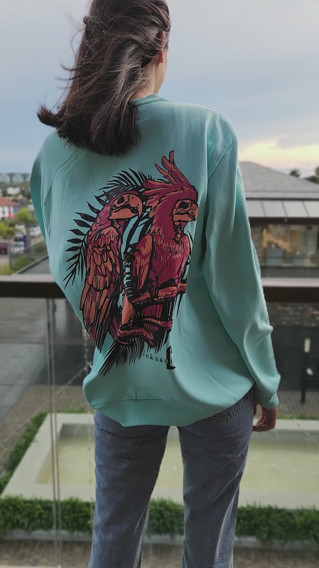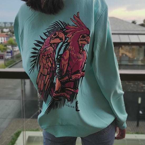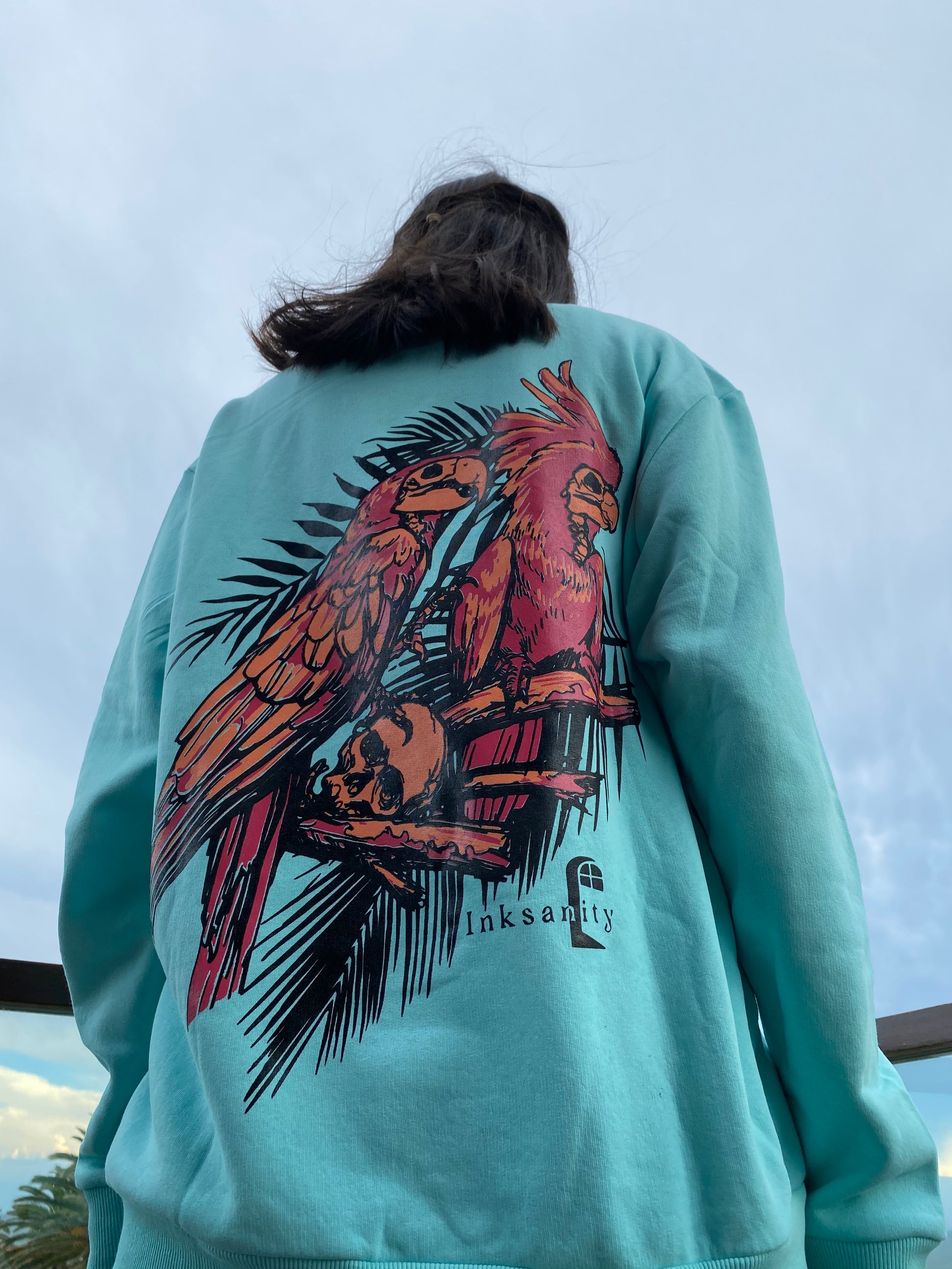 Extra large print with exotic birds at the back, detail in front.